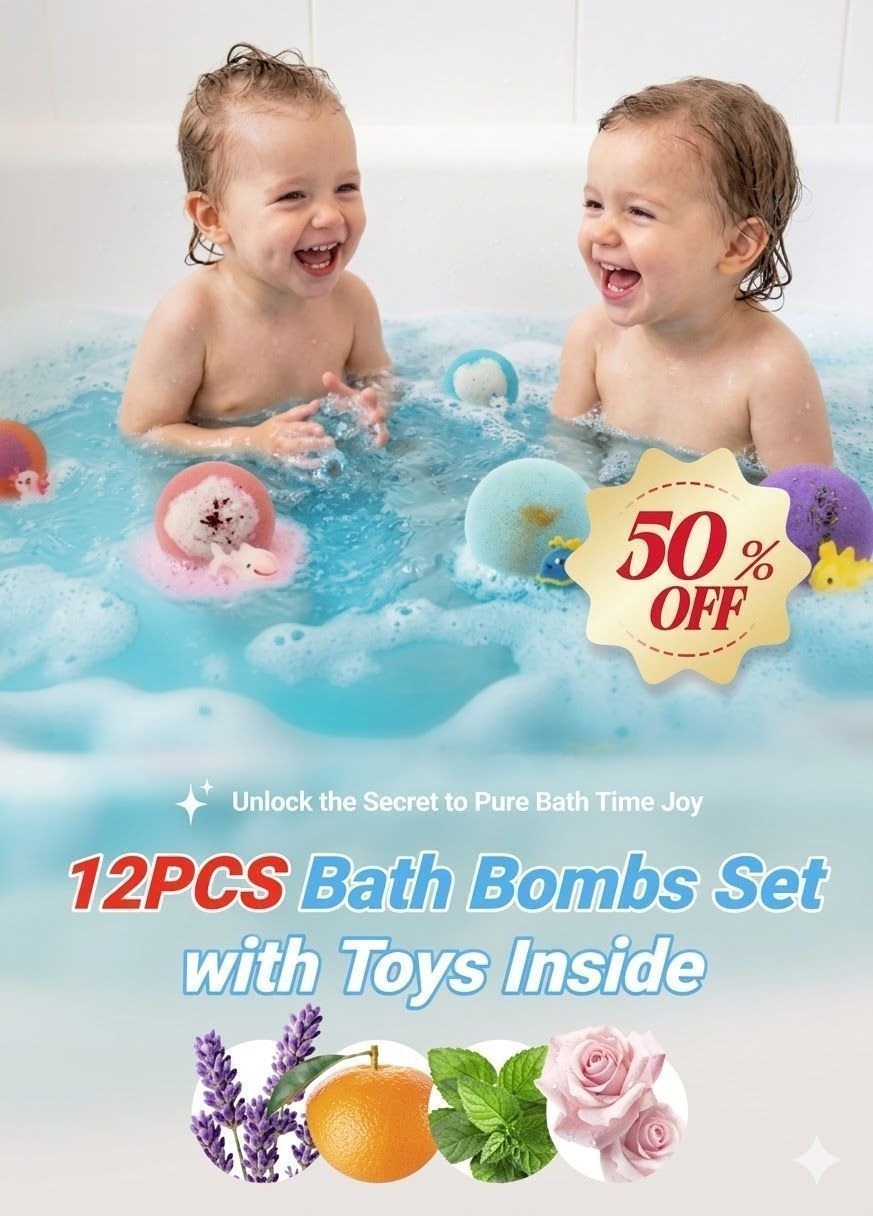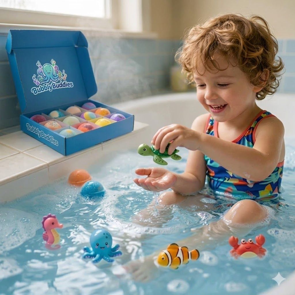 As each bath bomb fizzes away, a small ocean-themed toy magically appears—sea creatures, treasures, and more.Turns routine bathing into an exciting treasure hunt that kids look forward to.
